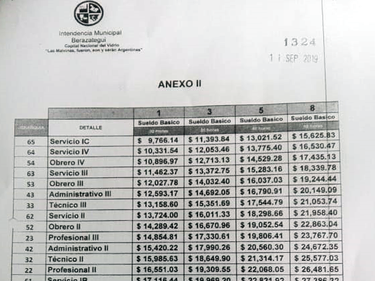 Tras el acuerdo que se rubricara el pasado 16 de septiembre entre el Sindicato de Trabajadores Municipales de Berazategui y el departamento ejecutivo Municipal para el aumento del salario de los trabajadores del distrito, ponemos en conocimiento de los afiliados a la entidad la escala salarial vigente al día de la fecha, que incluye mencionado incremento.